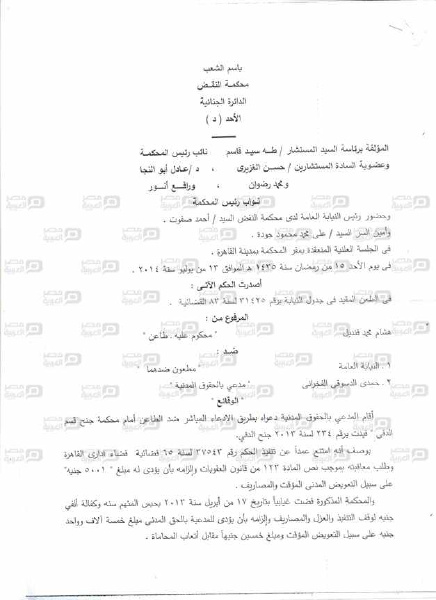 أودعت محكمة النقض دائرة الأحد "د" برئاسة المستشار طه قاسم، مذكرة بنص حيثيات وأسباب حكمها الصادر في يوليو الماضي بإلغاء حبس الدكتور هشام قنديل، رئيس مجلس الوزراء الشرعي، ...