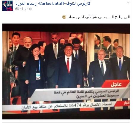 نشر الرسام العالمى البرازيلى، كارلوس لاتوف، صورة منذ قليل عبر صفحته الرسمية بفيس بوك، عن مسابقة للكشف عن موقع قائد الانقلاب العسكرى خلال مجموعة زعماء بقمة العشرين والتى اختتمت فعالياتها بالصين.