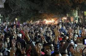 هتف المشاركون ضد حكم العسكر وضد جرائم الانقلاب واعتداءه على طلاب الجامعات ورفعوا صور الدكتور مرسي وعلامة رابعة الصمود .
