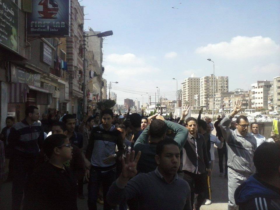 رافعين شارات رابعة العدوية، وصور الرئيس محمد مرسي، مؤكدين استمرار فعاليتهم الرافضة للحكم العسكري، والمطالبة بعودة الشرعية ومحاكمة الانقلابيين.