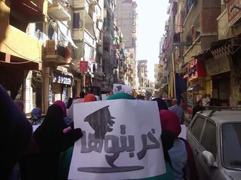 وطالبوا بالقصاص لدماء الشهداء وعودة المسار الديمقراطى ومحاكمة كل المتورطين فى هذه الجرائم، رافعين علم مصر بجوار صور الرئيس محمد مرسى وشارات رابعة العدوية ورفعوا أيضا لافتات "خربتوها" وأخرى تحمل عبارات الدعوة لوحدة الشعب المصرى فى وجه العسكر وجرائمه، والنزول للميادين فى الحادى عشر من نوفمبر القادم لإنقاذ البلاد، وإعدام قادة العسكر وعصابته.