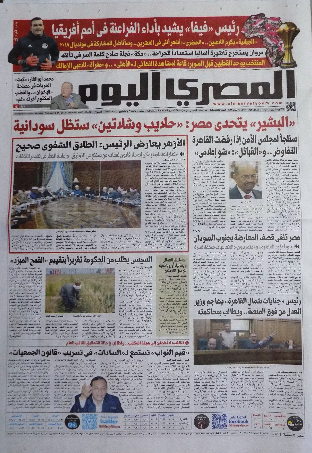 وأبرزت الصحف كذلك تصاعد الأزمة مع السودان بشأن حلايب وشلاتين، حيث خصصت المصري اليوم المانشيت الرئيسي ، الذي جاء عدائيا ضد السودان كتبت: إن "البشير" يتحدى مصر: "حلايب وشلاتين" ستظل سودانية.. سنلجأ لمجلس الأمن إذا رفضت القاهرة التفاوض.. و"القبائل": "شو إعلامى".. حيث اتهم البشير القاهرة بدعم المعارضة ضده.. وتهكمت البوابة على الرئيس السوداني وكتبت: شعرة "البشير".. "ساعة تروح.. وساعة تيجى".. الرئيس السودانى: "هلايب سودانية" وشيوخ القبائل: "حلايب مصرية".. مع صورة ساخرة للبشير.