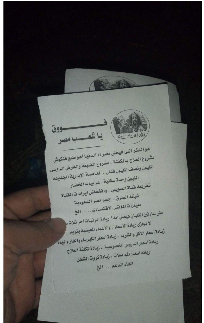 استيقظ أهالي كفر الدوار على حملة قصاصات تملأ شوارع المدينة ومداخل القري والكباري، تحمل عبارات.. مصر بعد أكثر من 4 سنوات من الانقلاب العسكري.. وباقي إيه تخاف عليه. ومصر بتتباع.
