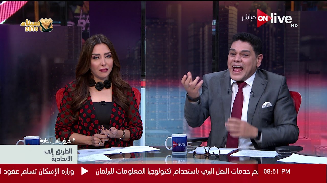 كان الثنائي مؤخرًا يُقدّم برنامج “الطريق إلى الاتحادية”، والذي بدأ عرضه منذ انتهاء فعاليات مؤتمر “حكاية وطن”، الذى عُقدت جلساته منذ 17 إلى 20 يناير الماضي، تحت رعاية الجنرال السيسي، بعدما تم الاستعانة بهما ليُقدما برنامج التوك شو الرئاسي في القناة، بالإضافة إلى الإعلامية شافكي المنيري، والتي شهد يوم 23 مارس الماضي، آخر ظهور لها على شاشة القناة.