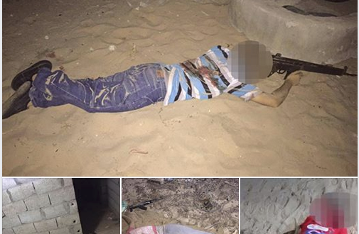 أعلنت وزارة الداخلية بحكومة الانقلاب اليوم السبت 8 يونيو 2019م، عن اغتيال 4 مواطنين جدد داخل أحد العقارات بمنطقة ابو عيطة بالعريش بزعم التورط في تنفيذ الهجوم على كمين ” بطل 14″ الأمني فجر اليوم الأول لعيد الفطر بالعريش.