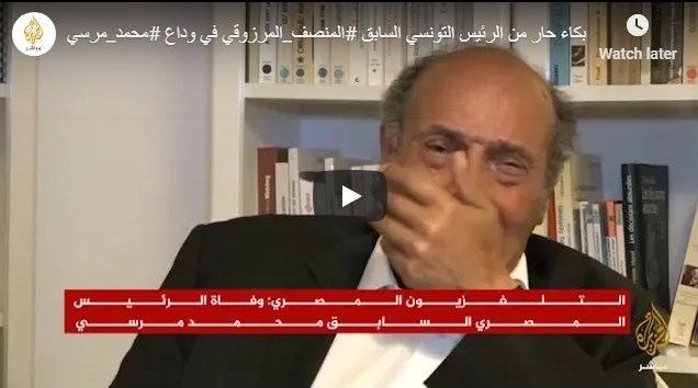 ولم يتمالك المرزوقي نفسه وأجهش بالبكاء الشديد حزنا على وفاة صديقه الرئيس الشهيد محمد مرسي .