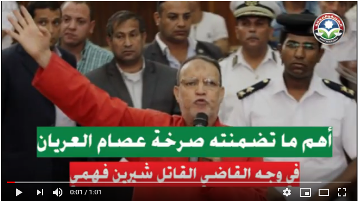 كعادته، صرخ في وجه الظالم ليطالبه باتباع الحق، ولأنه لم يعتد سوى على الجرأة في طلب الحق فلم يتأخر الدكتور عصام العريان في مواجهة القاضي القاتل شيرين فهمي بجريمته بقتل الرئيس محمد مرسي، بالتعنت والقسوة في التعامل والسكوت عن الانتهاكات التي كشفها الرئيس في قاعة المحكمة، وصولا إلى ترك الرئيس يموت في القاعة دون إسعاف أو محاولة للإسعاف.