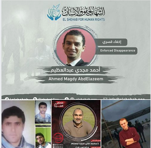 أيضا تواصل عصابة العسكر ببني سويف إخفاء الشاب “أحمد مجدي عبد العظيم رياض”، يبلغ من العمر 24 عامًا، منذ القبض التعسفي عليه يوم 21 ديسمبر 2017 من منزله، قبل اقتياده لجهة مجهولة.
