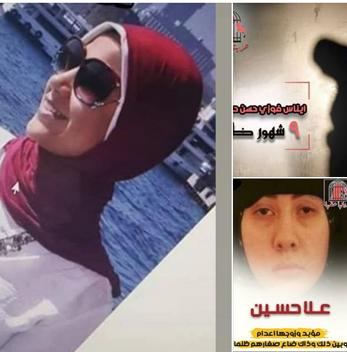 كما ذكرت أن علا حسين تم اختطافها وهي حامل في الشهر الثالث وزوجها وحرمان طفلتيها من الأب والأم، وأجبرت بعد وضع طفلتها الثالثة في السجن على فطمها لتخرجها بعيدا عن ظروف الاحتجاز السيئة، وحكم عليها بالإعدام ثم تم تخفيف الحكم بالسجن المؤبد وتقضي حكمها في سجن القناطر، وتم الحكم على زوجها بالاعدام حكما نهائيا.