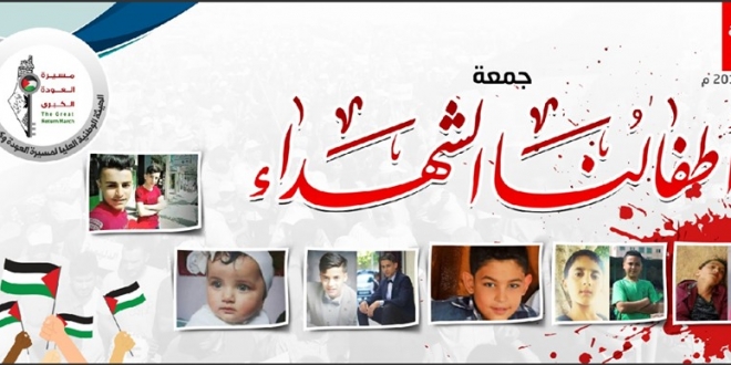 “أطفالنا الشهداء” عنوان الجمعة الـ78 لـ”مسيرات العودة” الفلسطينية