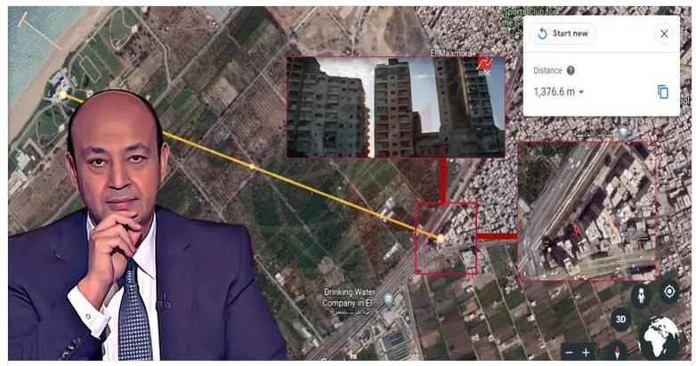 واستعرض أديب عنوان الشقة بـ“عمارة أبو عمو أرض المثلث طريق الطابية المعمورة البلد” وقام بعرض صورة للعمارة. بالرجوع إلى خرائط جوجل يمكن تحديد الموقع بسهولة، وهي عمارة مشابهة بتفاصيلها للعمارة الواردة في الفيديو. تبعد الشقة مسافة ما يقرب 1400 متر عن الاستراحة وهو أقل مما ذكره عمرو أديب بأن المسافة تقترب من 1500 متر.