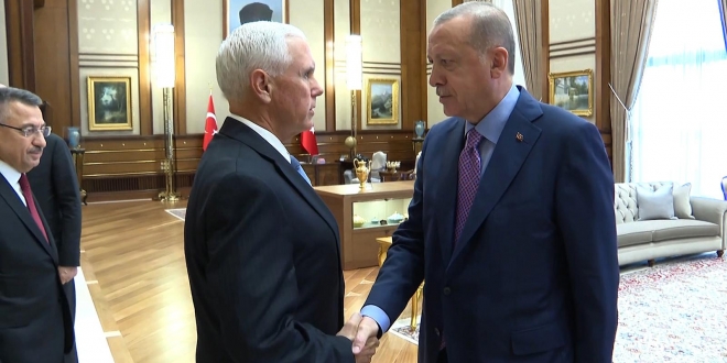 أعلن مايك بنس نائب الرئيس الأميركي الاتفاق مع الرئيس التركي رجب طيب أردوغان، على وقف إطلاق النار في الشمال السوري، عبر تعليق عملية “نبع السلام” التركية للسماح للوحدات الكردية بالانسحاب من منطقة عرضها 35 كلم جنوب الحدود التركية.
