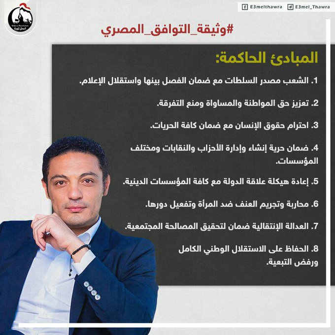 بدوره علق حامد عبد ربه قائلا: "#وثيقة_التوافق_المصري تسبقها خطوة مهمه جدا جدا جدا حتى نصل للوثيقه واكيد كل الناس رافض او مؤيد عارف ايه هيه دى الخطوه".