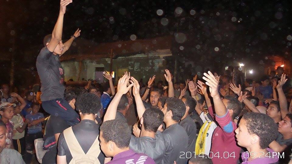 وجابت التظاهرة شوارع القرية وسط تفاعل وتأييد من الأهالي ملوحين بإشارة رابعة العدوية, فيما أضفى شباب "ألتراس مشاغبين" أجواء حماسية، بترديد الهتافات المعادية للانقلاب وقائده، ومطالبة بعودة الشرعية.