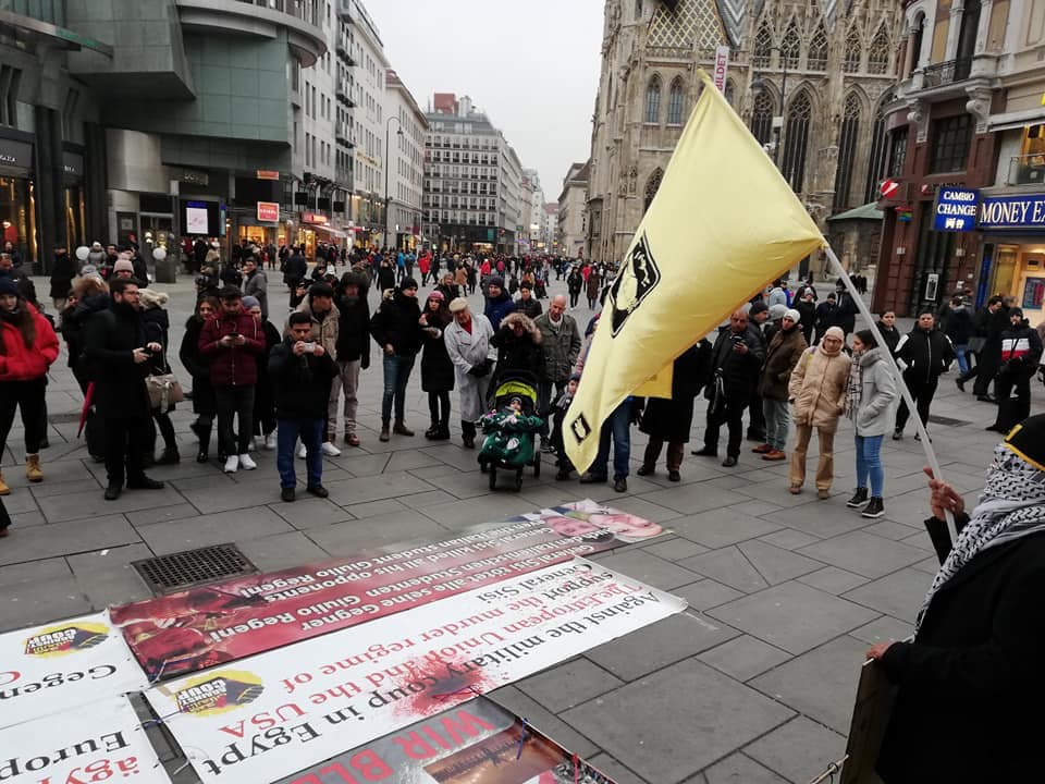 ففي النمسا، نظَّم المجلس التنسيقي للجالية المصرية في النمسا وقفة وسط فيينا، رفع المشاركون فيها أعلام مصر، وصور الرئيس محمد مرسي، ولافتات تندد بجرائم قادة الانقلاب في مصر، مرددين هتافات تندد باعتقال الآلاف، واستمرار جرائم الإخفاء القسري والتصفية الجسدية للمعتقلين، مؤكدين استمرار الثورة حتى إسقاط الانقلاب.