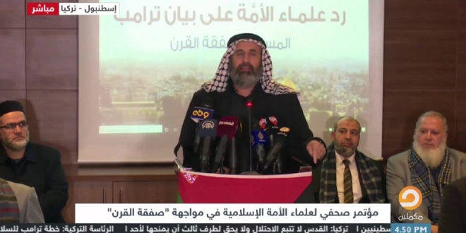 عقد عدد من علماء الأمة مؤتمرًا صحفيًّا في مدينة إسطنبول، مساء اليوم، لكشف حقيقة “صفقة القرن” وفضح كل من يشارك فيها ومن يؤيدها.