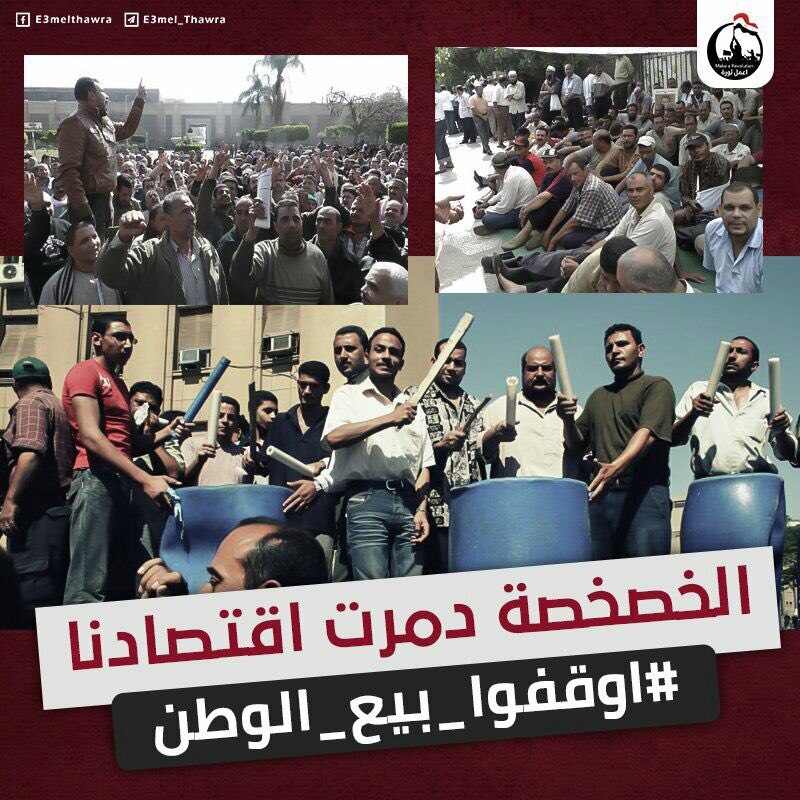 وكتب عمر خليل: “بدا من جديد عهد الخصخصة وبيع الأراضى والمصانع وشركات القطاع العام.. هناك صفقة لبيع بنك القاهرة لمستثمرين أجانب”، فيما كتب نبيل: “أوقفوا أكل حقوق العاملين وتدمير مقدرات مصر.. بعد ما كانت أوروبا تلبس القطن المصري.. الآن مصر تلبس البلاستيك الصيني”.