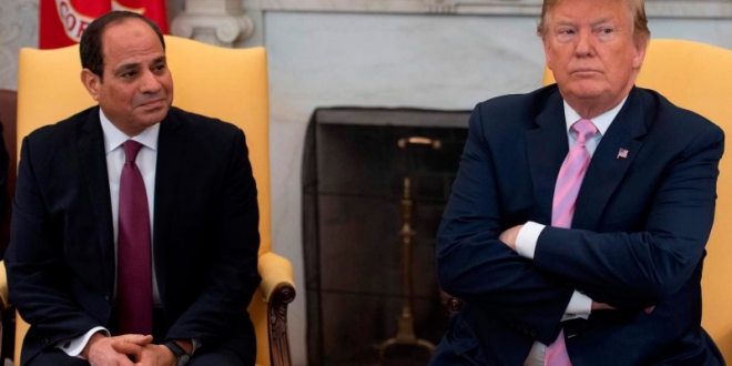 وكان الرئيس الأمريكي دونالد ترامب قد أشاد بعبد الفتاح السيسي، قائد الانقلاب العسكري، واصفا إياه بأنه "ديكتاتوري المفضل"، واستمر تقديم المساعدات العسكرية الأمريكية على قدم وساق بـ1.3 مليار دولار، على الرغم من الاحتجاجات الداخلية في وقت سابق في إدارته والتقييمات، التي تفيد بأن مسار القاهرة نحو الإصلاحات قد تباطأ بسبب الاتجاهات الاستبدادية للجنرال السابق.