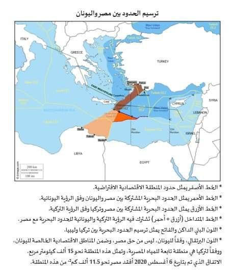 أما الدليل الثاني الذي ساقه على تحقق هذه الخسارة كان من "الرفض المصري المستمر منذ سنوات لترسيم الحدود البحرية مع اليونان بسبب إهدار الرؤية اليونانية مساحة ضخمة من المناطق الاقتصادية الخالصة المصرية".