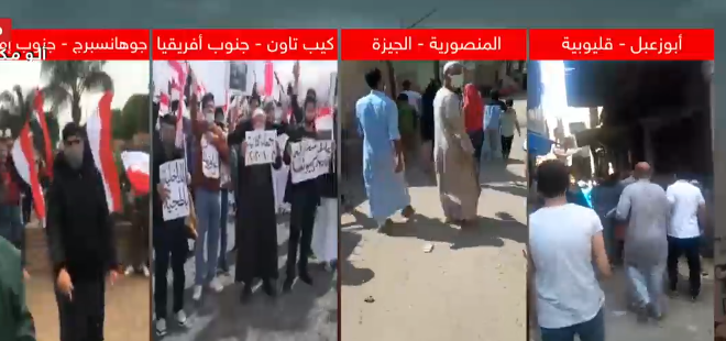 كما تواصلت مظاهرات المصريين فى الخارج من العواصم والمدن العالمية، ونظموا عقب صلاة الجمعة فى جنوب إفريقيا وقفة من جوهانسبرج وأخرى من كيب تون لمساندة الحراك الثوري بمصر وللمطالبة برحيل السيسي والإفراج الفوري عن المعتقلين في السجون.