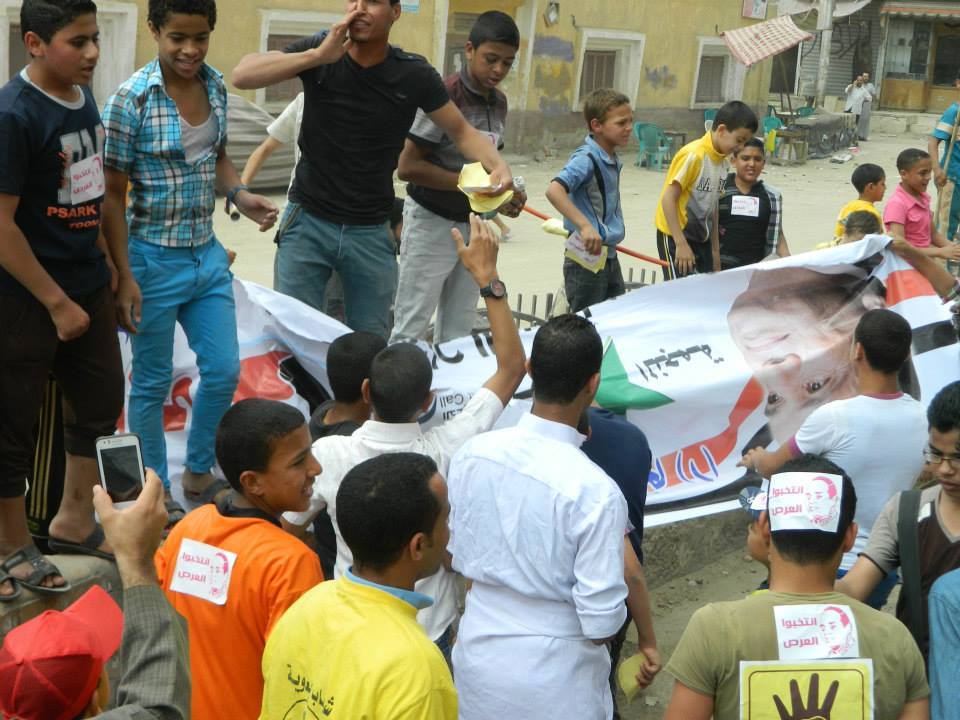 فيما قام بعض الثوار بتمزق صورًا ولافتات الدعاية الانتخابية لقائد الانقلاب العسكري عبد الفتاح السيسي , و تكررت تلك الواقعة في الآونة الأخيرة بمناطق مختلفة من المحافظة، في ظل حالة السخط الشعبي الكبير من الانقلاب العسكري والقمع المتزايد وغلاء الأسعار وتدني الحالة المعيشية.