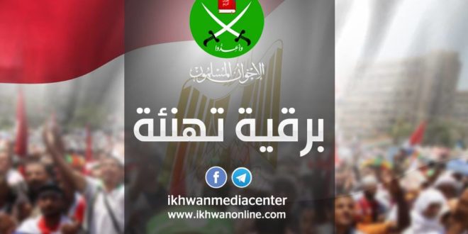 وتابع: "بمناسبة هذا الشهر الكريم فإننا في جماعة الإخوان المسلمين ومع التهنئة والمباركة للإنسانية كلها نؤكد للعالم كله استمرار الجماعة على فكرها الذي قامت عليه منذ عام 1928 ميلادية وعدم المساومة عليه أو الانحراف عنه رغم كل المحن والاعتداءات الظالمة التي تنصب عليها وعلى الأمة كما يحدث في المسجد الأقصى والأرض المباركة حوله مهد الرسالات وكما يجري على العاملين للإسلام المتمسكين بقيمه وقيم الرسالات الربانية من قتل ومحاولة إفشال لمشاريعهم على مستوى العالم كله مثل ما حدث مع الرئيس المنتخب الدكتور محمد مرسي رحمه الله، وقتل وحرق الضعفاء الذين يأبون الفتنة وإشعال الحروب عليهم في بلده وغيرهم رحمة الله عليهم جميعا".