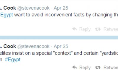 وقال الباحث الأمريكي، عبر حسابه على موقع "تويتر": "النخب المصرية تريد تجنب الحقائق غير المريحة عبر تغيير تعريف الانقلاب العسكري".
