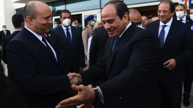 دعا عبدالفتاح السيسي قائد الانقلاب العسكري إلى ضرورة الحفاظ على التهدئة بين الجانبين الفلسطيني والإسرائيلي وذلك عقب لقاء جمعه برئيس الوزراء الإسرائيلي نفتالي بينيت في مدينة شرم الشيخ.