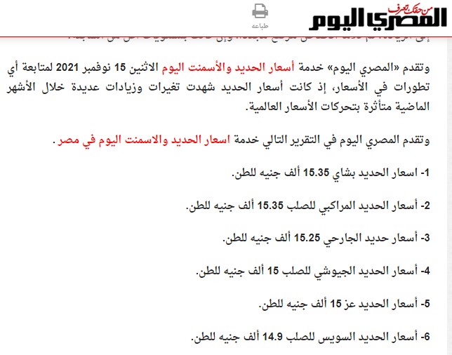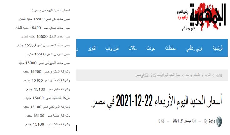 وشهدت أسعار الحديد الفترة الماضية زيادات متوالية مدفوعة بزيادة الأسعار العالمية، واتجهت مصانع الحديد المصرية إلى إعلان أسعارها الجديدة، تباعا بداية من 15 أكتوبر الماضي، وكانت كالتالي: