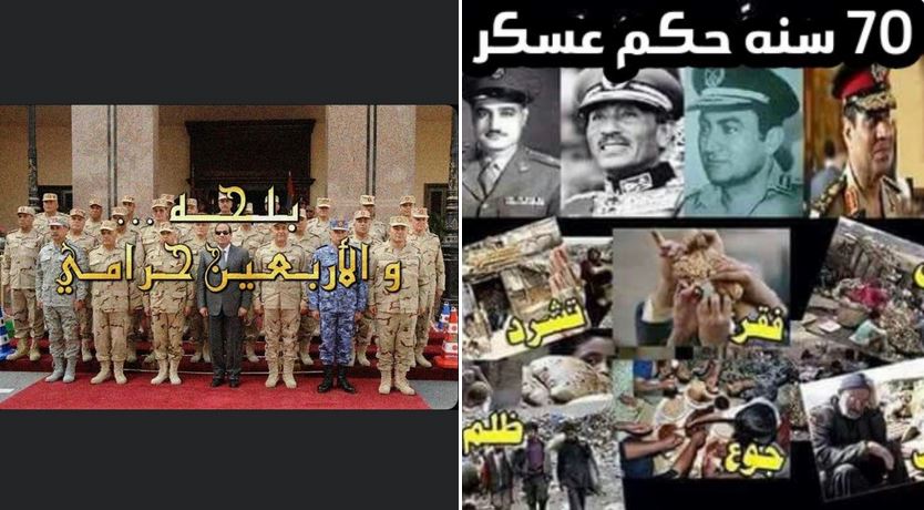 وسلط الناشطون الضوء على مصر، وكيف تسبب فساد العسكر في نزع مصدات الصدمات عن مصر أمام الرياح العاتية ، فباتت تتأثر بحرب تبعد عنها آلاف الكيلومترات مثل الغزو الروسي لأوكرانيا وتجعلها فريسة للجوع والغلاء والوباء.