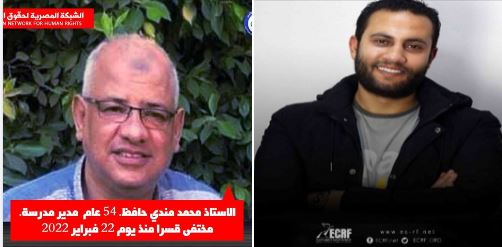 طالبت الشبكة المصرية لحقوق الإنسان النائب العام بالتدخل لإنقاذ حياة المعتقل محمد مندي حافظ، البالغ من العمر 54 عاما والمختفي قسريا منذ 3 أسابيع بعد اعتقاله من قبل قوات الأمن بالقاهرة من داخل منزله فجر 22 فبراير الماضي وإخلاء سبيله أوتقديمه للمحاكمة إذا كان مدانا بأية جريمة، وفتح تحقيق في عملية اعتقاله تعسفيا وإخفائه قسريا.