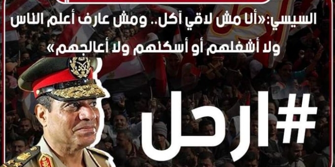 أما الإعلامي أسامة جاويش فكتب: "ارحل يا سيسي ليس مجرد هاشتاج يغرد به ملايين المصريين ، مطالبين الجنرال الأسوأ في تاريخ البلاد؛ في ما يتعلق بانتهاكات حقوق الإنسان بالرحيل عن منصبه والتوقف عن سياساته القمعية بحق المصريين، وإنما هو تجسيد لواقع أليم يعاني منه الشعب المصري بمختلف طوائفه تحت حكم السيسي".