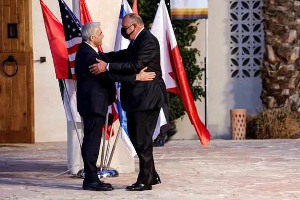 استقبل ناشطون الصور الملتقطة الأحد 27 مارس، والتي أظهرت الأحضان والشوق المتبادل بين وزير خارجيتي الانقلاب والاحتلال بالغضب، بعد أن تفاجأ المسلمون والعرب بقمة تضم وزراء الخارجية العرب المطبعين مع الاحتلال ومنهم وزير خارجية الانقلاب سامح شكري عُقدت في النقب، وهو المكان نفسه الذي شهد آخر عملية استشهادية قُتل فيها 4 مستوطنين، وتزامنت قمة المطبعين مع إعلان حكومة الاحتلال عن إقرار إقامة 5 مستوطنات يهودية جديدة في النقب، هو ما سخر منه الناشطون واعتبروه مكافأة للمطبعين ، والذين سبق أن أعلنوا أن تطبيعهم مقابل وقف المستوطنات.