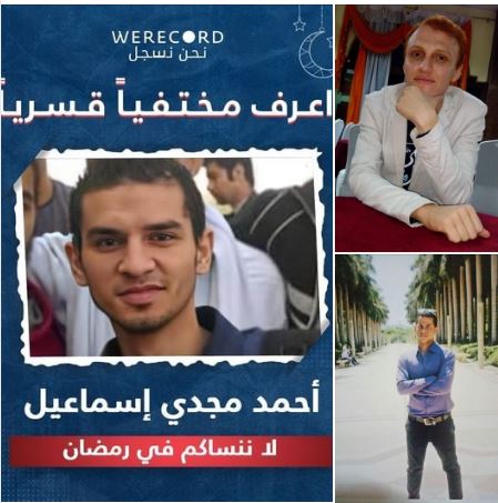 ومن ناحية أخرى قالت منظمة "نحن نسجل" الحقوقية إن 4 رمضانات مضت وها هو رمضان الخامس قد أتى وما يزال المهندس أحمد مجدي إسماعيل قيد الإخفاء القسري.