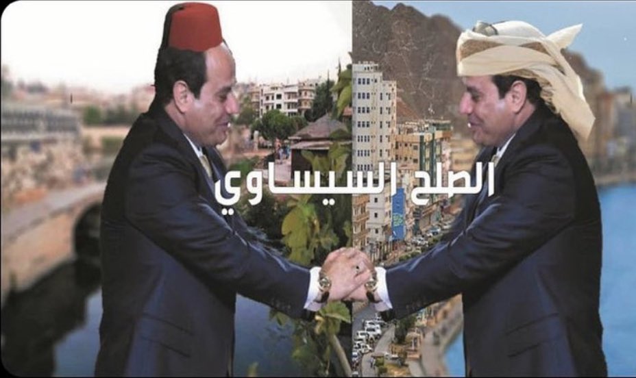 ونشر أ.د.سعد الدوسري (@saadaldosari21) صورة متماثلة للسيسي هو يحاور ويصالح نفسه وكتب "السيسي يحاور السيسي في الأخير الصلح السيساوي ".