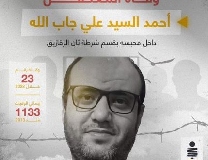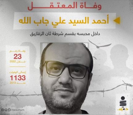 وثقت عدد من منظمات حقوق الإنسان استشهاد مهندس البرمجيات "أحمد السيد علي جاب الله " بعد إصابته بأزمة قلبية مفاجئة داخل محبسه بقسم شرطة ثان الزقازيق بمحافظة الشرقية .