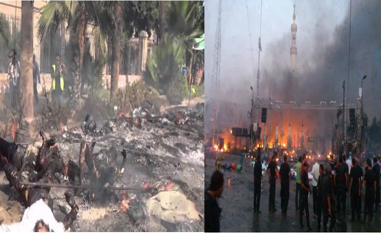 وما هي إلا لحظات ولقينا المستشفى الميداني بتتحرق والدخان بيتصاعد من كل ناحية ، الكلاب الكفرة حرقوا المستشفى بالمصابين بالشهداء".