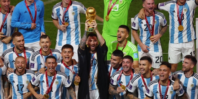 وقاد ليونيل ميسي منتخب الأرجنيتن للتتويج بكأس العالم 2022 عقب الفوز على فرنسا بركلات الترجيح بعد التمديد لشوطين إضافيين، عقب نهاية المباراة الماراثونية في وقتها الأصلي والإضافي بالتعادل 3-3، والاحتكام إلى ركلات الترجيح التي انتهت بفوز المنتخب الأرجنتيني على نظيره الفرنسي بنتيجة (4-2).