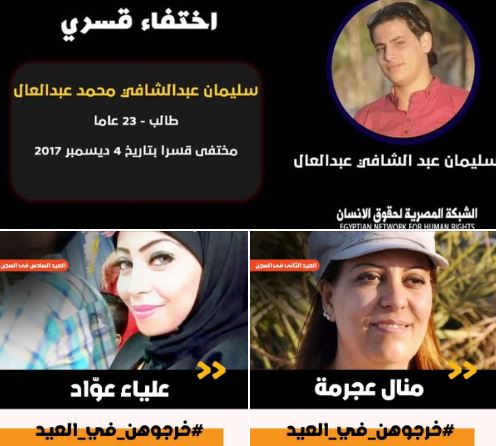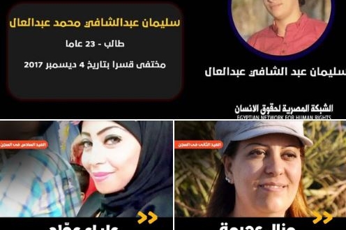 طالبت الشبكة المصرية لحقوق الانسان النائب العام المصرى ووزارة الداخلية بحكومة الانقلاب بالكشف عن مكان الطالب سليمان عبد الشافى محمد أحمد عبدالعال وإخلاء سبيله، أو تقديمه لجهات التحقيق المختصة .