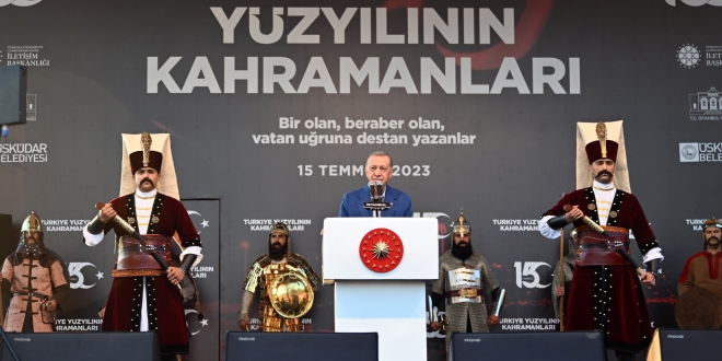وأشار أردوغان إلى أن هناك لحظات محورية في تاريخ الأمم، وقال: "15 يوليو هو علامة فارقة بالنسبة لنا، إنها واحدة من أهم مراحل كفاحنا الذي دام ألف عام لجعل أراضي الأناضول وطننا وكفاحنا الذي دام 200 عام من أجل البقاء".