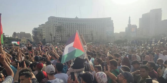 وقد حاول النظام تحقيق ذلك بمساعدة الشعب المصري. في 18 أكتوبر، وبدون أي سخرية، قال السيسي إنه يمكن حشد “الملايين” لمقاومة الضغط الأمريكي الإسرائيلي. سرعان ما تمت مشاركة المواقع المحددة عبر الإنترنت. خطط السيسي لاستخدام هذا لامتصاص الغضب الشعبي ، كما حدث ، انتهى الأمر بالعديد من المشاركين بالخروج عن النص ، متجهين إلى ميدان التحرير. حتى أن البعض رددوا شعار انتفاضة 2011 “عيش، حرية، عدالة اجتماعية”، وأصروا على أن “هذه مظاهرة حقيقية، وليست تفويضا لأحد”. واعتقلت الشرطة أكثر من 100 شخص، ومنذ ذلك الحين تم تحصين ميدان التحرير بالعربات المدرعة. ومع ذلك، تحدثت شخصيات مثل شيخ الأزهر محمد الطيب علنا، مؤيدة المقاومة الفلسطينية، وطالبت بإعادة تقييم علاقات مصر مع الغرب.