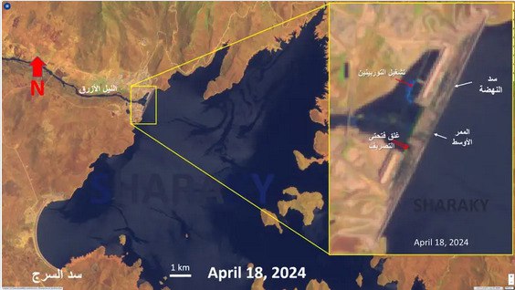 وكشفت صورة فضائية حديثة التقطت مساء السبت استمرار التخزين الخامس بعد غلق بوابات المفيض العلوية، حيث إن عملية التخزين الخامس مستمرة بلا توقف، ليصل منسوب البحيرة أمس إلى حوالي 637 مترا فوق سطح البحر، بإجمالي تخزين حوالي 57 مليار متر مكعب، بحسب تصريحات إثيوبية.