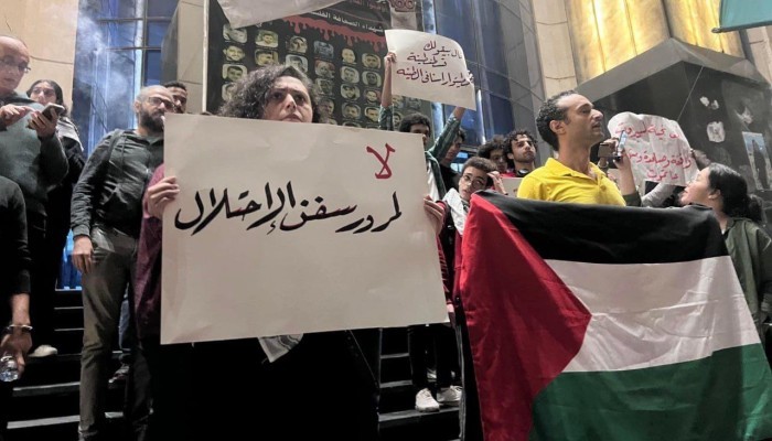 وفي نوفمبر الماضي، نظم عدد من النشطاء وقفة على سلالم نقابة الصحفيين للتنديد بسماح السلطات المصرية برسو السفينة كاثرين في ميناء الإسكندرية، التي يشتبه في حملها “مواد متفجرة كانت في طريقها إلى إسرائيل”، إضافة إلى عبور سفينة حربية إسرائيلية ترفع علمي إسرائيل ومصر، قناة السويس.