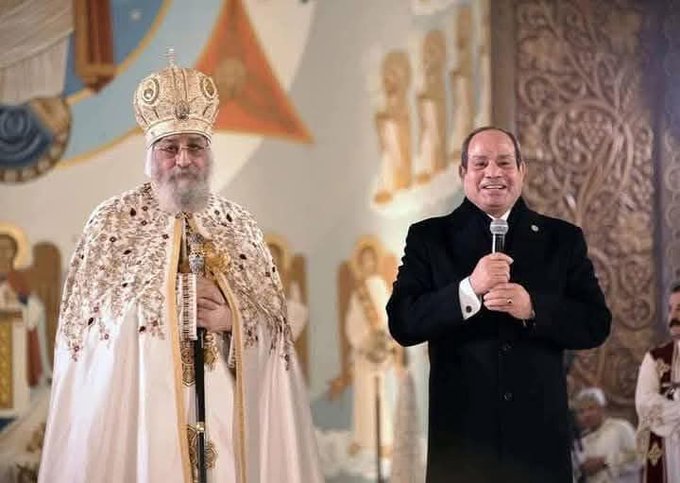 (حاجتين أنا معملتهمش بفضل الله.. إيدي لا اتعاصت بدم حد، ولا خدت مال حد)، ليعيد الكرة مرة ثانية، ويكرر نفس التصريحات خلال زيارته إلى كاتدرائية ميلاد المسيح بالعاصمة الإدارية الجديدة، مدعيًا عدم تورطه في دماء المصريين أو سرقة أموالهم، ما أثار موجة من السخرية على مواقع التواصل الاجتماعي.