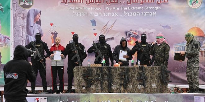 فيما دخل اتفاق وقف إطلاق النار في غزة يومه الـ35، سلّمت كتائب القسام، الجناح العسكري لحركة حماس، صباح اليوم السبت، محتجزَين إسرائيليَّين في رفح، قبل تسليم ثلاثة آخرين في مخيم النصيرات، في وقت سُلّم المحتجز هشام السيد في مدينة غزة دون مظاهر احتفالية، وذلك ضمن الدفعة السابعة من المرحلة الأولى من عملية تبادل الأسرى والمحتجزين في قطاع غزة. في المقابل، يفرج الاحتلال اليوم عن 602 محتجز إسرائيلي، بحسب ما أعلن مكتب إعلام الأسرى أمس الجمعة.
