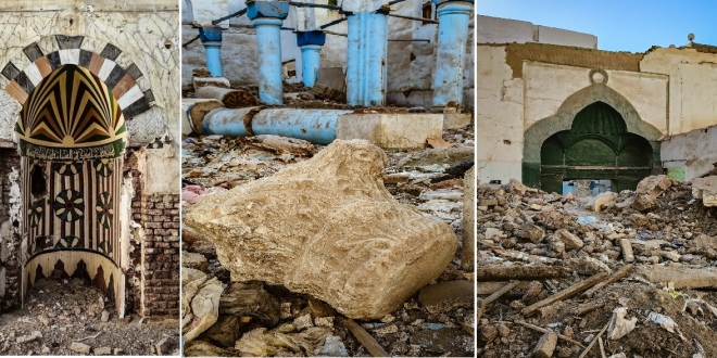 وقال أمير Amir Elsaraf على فيسبوك "في أسيوط تم هدم مسجد اليوسفي ذو التاريخ المزدوج؛ دار العبادة ذاتها منشأة منذ 1618 ميلادية وكانت مطمورة واكتشفت سنة 1911 ميلادية، جلب بناة المسجد مواد الإنشاء من أعمدة الجرانيت وغيرها قبل 400 سنة من معبد أخناتون المفقود في أسيوط.