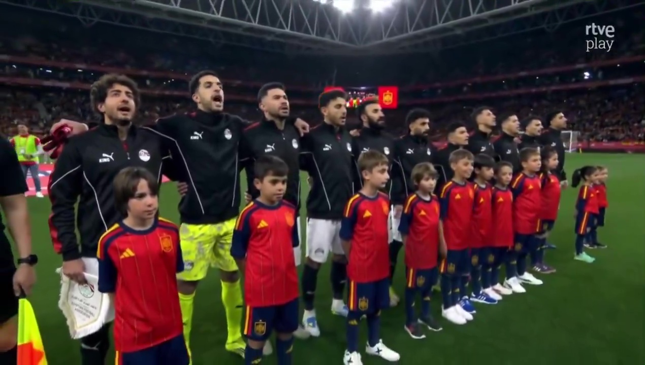 بدأت الأزمة منذ اللحظات الأولى للمباراة، حين أطلقت مجموعات من الجماهير الإسبانية صافرات استهجان أثناء عزف النشيد الوطني المصري، وهو سلوك وصفه الصحفي الإسباني أورتيجا بأنه "قلة احترام كبيرة"، وذلك في مقطع أعيد تداوله على فيسبوك.