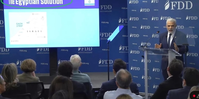 وفي فبراير 2025 طرح ليبيد في زيارة لعاصمة الولايات المتحدة وأمام منتديات فكرية سياسية صهيونية ما اسماه "الحل المصري "  وفي مؤتمر بواشنطن وكزعيم للمعارضة عرض خطة اليوم التالي، وهي أن مصر شريك استراتيجي وحليف موثوق به، وأن السيسي قوة مستقرة في المنطقة ومقاتل طويل الأمد ضد "التطرف" الديني،  ولذلك اقترح أن تدير قوة تابعة للسيسي قطاع غزة مقابل تسديد ديون مصر الخارجية  ويكون رئيسها المباشر السيسي.