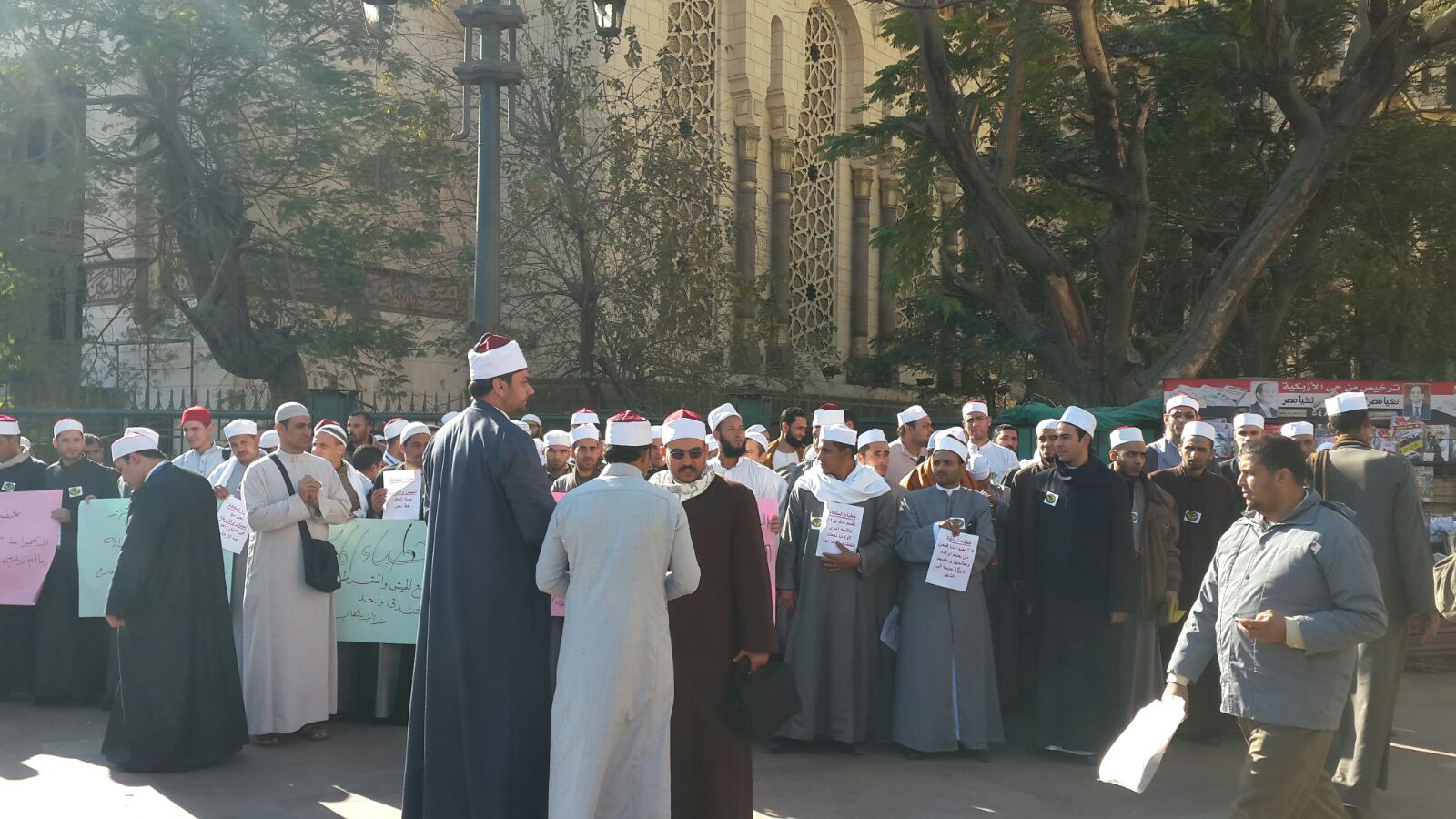 وكان المئات من خطباء الأوقاف بنظام "المكافأة" قد تظاهروا، أمس، للمطالبة بالتعيين، مؤكدين أن عدد الخطباء على مستوى الجمهورية يبلغ 3800 خطيب يطالبون بالتعيين، ومنهم من يعمل بالخطابة منذ 9 سنوات، ويحصل الخطيب على راتب شهرى يبلغ 140 جنيها.