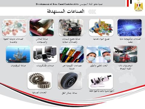 مشروع تنمية محور قناة السويس يوفر حوالي مليون فرصة عمل تتمثل في الصناعات المغذية المكون المحلي والخدمات المحلية والداعمة الطرح الأول للمشروع 30 إبريل 2013 والطرح الثاني للمشروع 1 يوليو 2013 وتاريخ التعاقد مع الاستشاري 9 يناير 2013 لوضع المخطط العام.